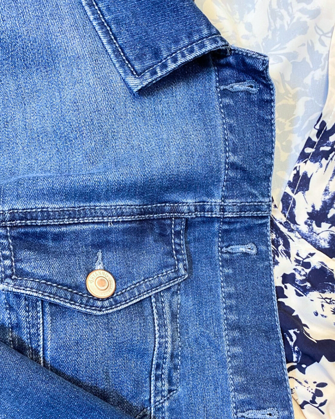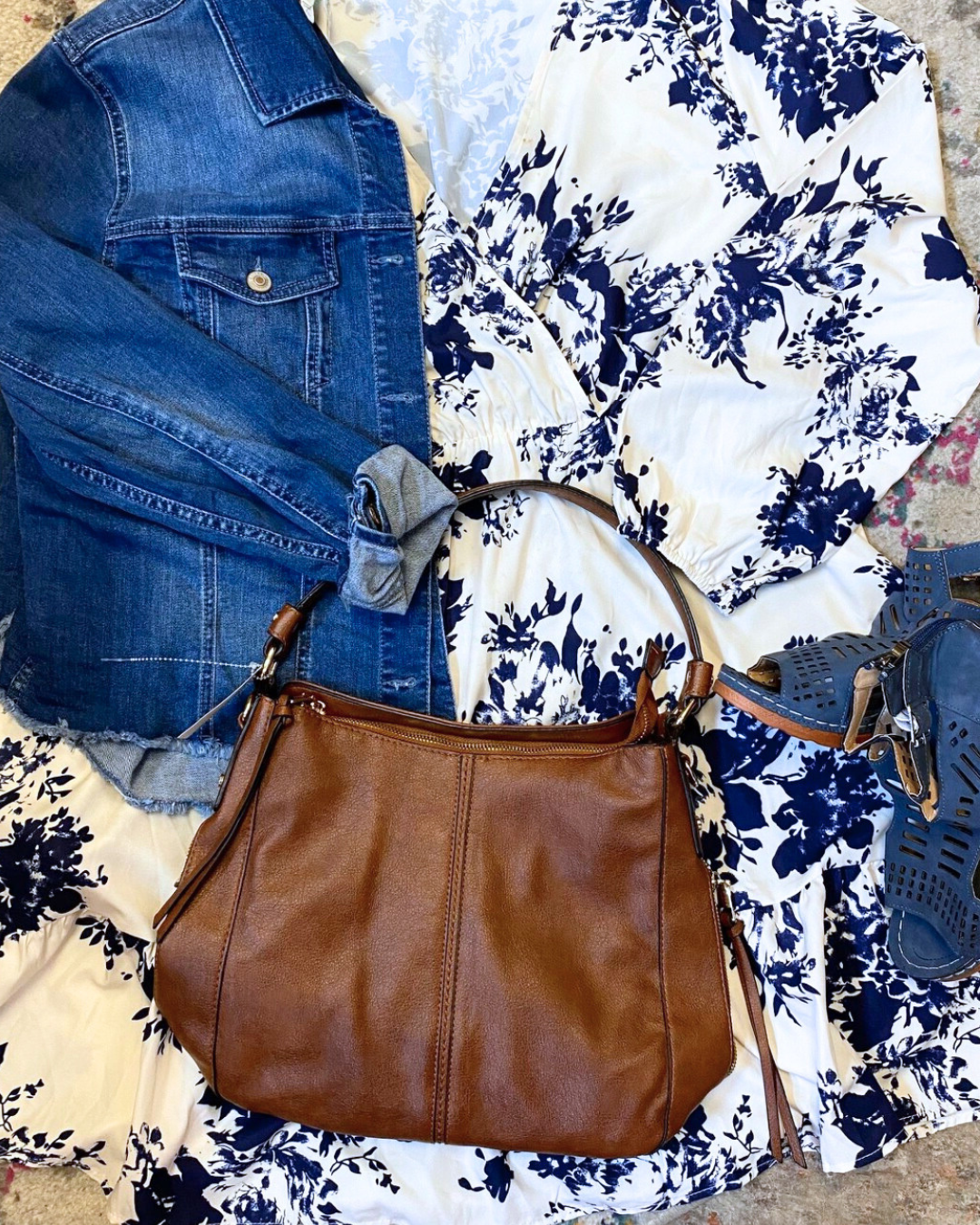 I’m always a sucker for a good dress, and this blue and white floral one immediately pulled me in. It’s easy, breezy, and feels like spring and summer wrapped into one. I layered it with a denim jacket to keep things relaxed and added simple accessories to pull everything together without overthinking it.