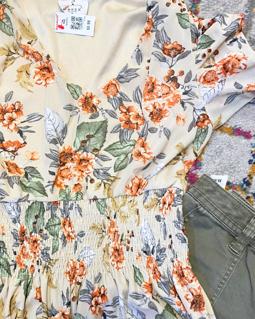 This look started with the shirt. The florals instantly brought a hint of Thailand to mind, and I leaned all the way into that feeling. Inspired by a relaxed dinner out at local favorite Goodwill find styling, I imagined a cozy, sit-down vibe like a night out at a favorite spot such as Bangkok Thai, nice, but not over-the-top.